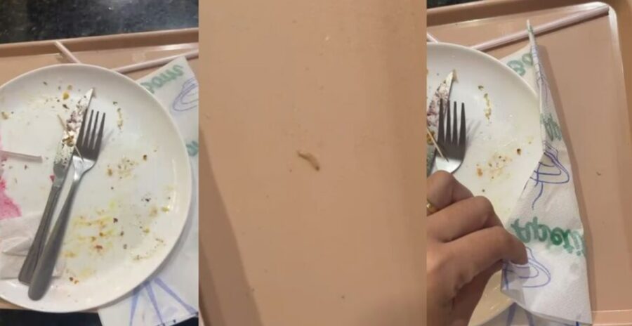 Conforme o relato, a princípio o ambiente parecia limpo e sem odores desagradáveis, porém, a situação mudou durante a refeição, pois encontraram as larvas de mosca. “Minha filha de 10 anos terminou de comer e, em seguida, meu filho. Foi quando ele falou para mim que tinha uns bichinhos andando na bandeja dele. Eu ouvi, mas achei que fosse nada”, relatou a mulher. Quando pegou a bandeja da filha, a mulher afirma ter encontrado uma larva andando. A bandeja do filho já havia sido recolhida por uma funcionária, impedindo que ela verificasse a presença dos insetos.